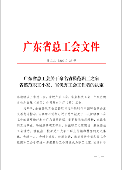 近日,我校被广东省总工会授予“省模范职工之家”荣誉称号。