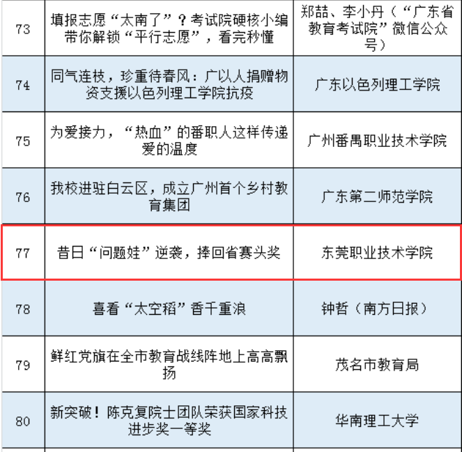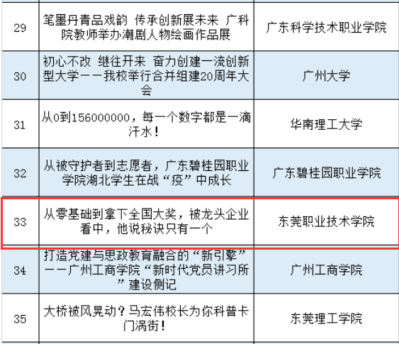3月18日,广东省教育厅公布了2021年广东教育好新闻奖。我校报送的新闻作品《昔日“问题娃”逆袭,捧回省赛头奖》《从零基础到拿下全国大奖、被龙头企业看中,他说秘诀只有一个》两篇作品分别获得二等奖、三等奖。