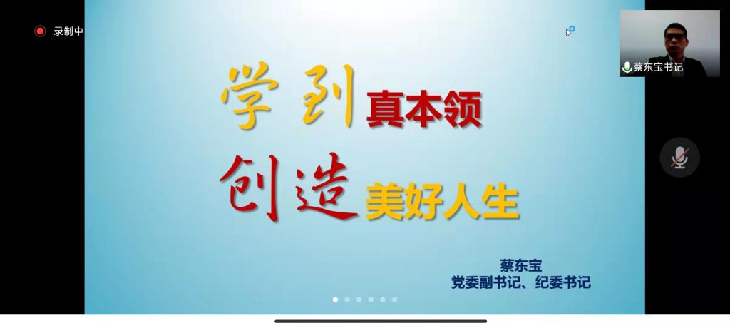3月23日上午,党委副书记、纪委书记蔡东宝在线上向21级物流协同1、2班的同学讲授《学到真本领 创造美好人生》,蔡东宝副书记以习近平总书记对青年学子的寄语拉开序幕,用一个个鲜活生动的案例鼓励同学们要积蓄奋发力量,对自己的前途充满信心。他表示,同学们要立志追求人无我有、人有我优、技高一筹的境界,学到真本领,用勤劳和智慧创造美好人生。