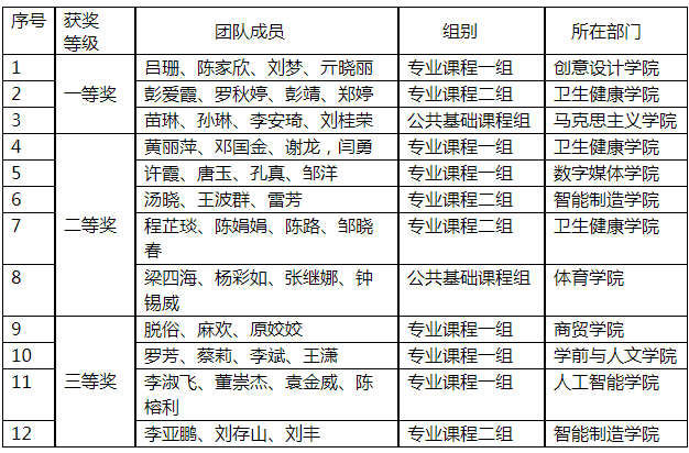 比赛共评出一等奖3名,二等奖5名,三等奖4名。精心准备,探寻职业教育改革模式创新;苦练内功,尽展我校教师崭新精神风貌。推荐省赛作品将继续前行。