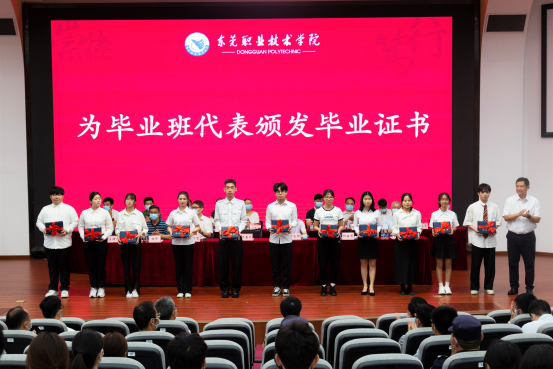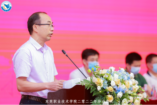 6月24日上午,东莞职业技术学院2022届学生毕业典礼在培训楼报告厅举行,校党委书记朱益民,校党委副书记、校长贺定修,党委副书记、纪委书记蔡东宝,党委委员、副校长杨云奇及相关部门负责人、专职副书记,辅导员代表、教师代表、2022 届毕业生代表等出席,大会由校党委委员、副校长杨云奇主持。