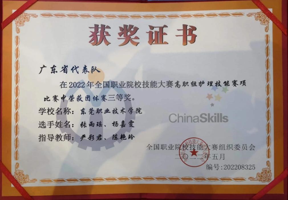 8月18—20日,2022年全国职业院校技能大赛高职组“护理技能”赛项在山东省莱芜职业技术学院举办,来自全国68所高校的136位参赛选手参加了此次竞赛。经过三天紧张激烈的角逐,我校卫生健康学院两名学子——2019级护理2班张雨瑶同学和2020级护理5班杨嘉雯同学在参赛选手中脱颖而出,荣获团体赛三等奖。