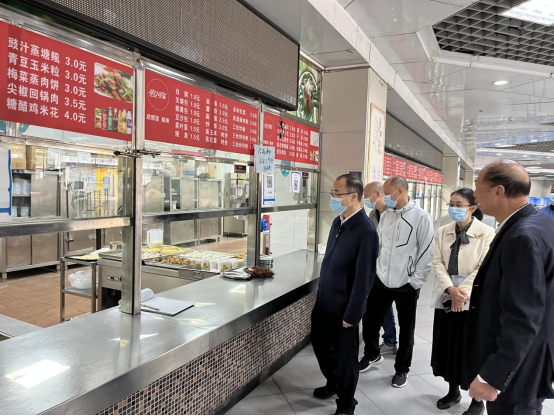 在学生食堂,校领导详细检查食品储备及伙食准备情况,反复强调做好食品安全工作,要求产业中心要加强工作人员健康管理,加强食品采购、储备、加工以及水电气等各个关键环节的安全管理,确保学生食堂饭菜质量不降、价格平稳。