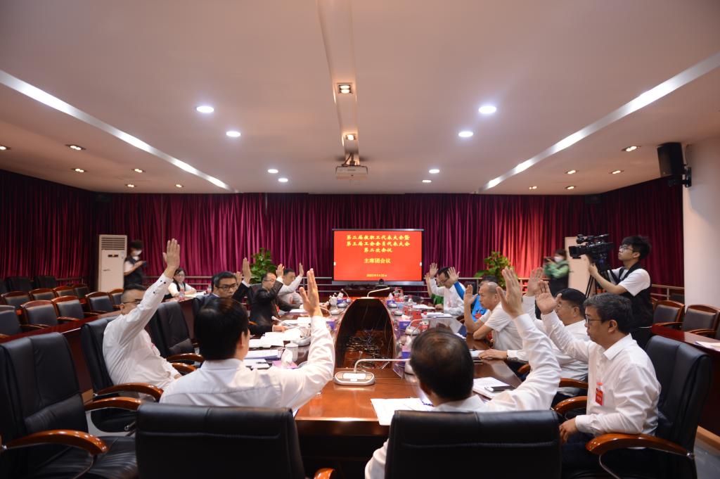 会议还听取了工会副主席吕冰清作的工会工作报告,书面审议了《学校财务工作报告》、《工会经费审查工作报告》以及《学术委员会工作报告》。随后,各代表团分别在分会场讨论和审议了校长工作报告和其他各类报告等大会议题。主席团会议听取各代表团分组讨论情况,审议了各项草案并提交大会表决。