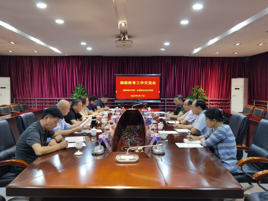 4月17日下午,湖南城市学院继续教育学院院长彭华一行6人来我校调研交流。我校党委副书记、校长贺定修,继续教育学院院长苏江,以及继续教育学院相关业务负责人在立德楼B415会议室与来宾座谈交流。