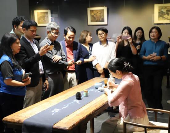 考察团观看仿宋点茶技艺