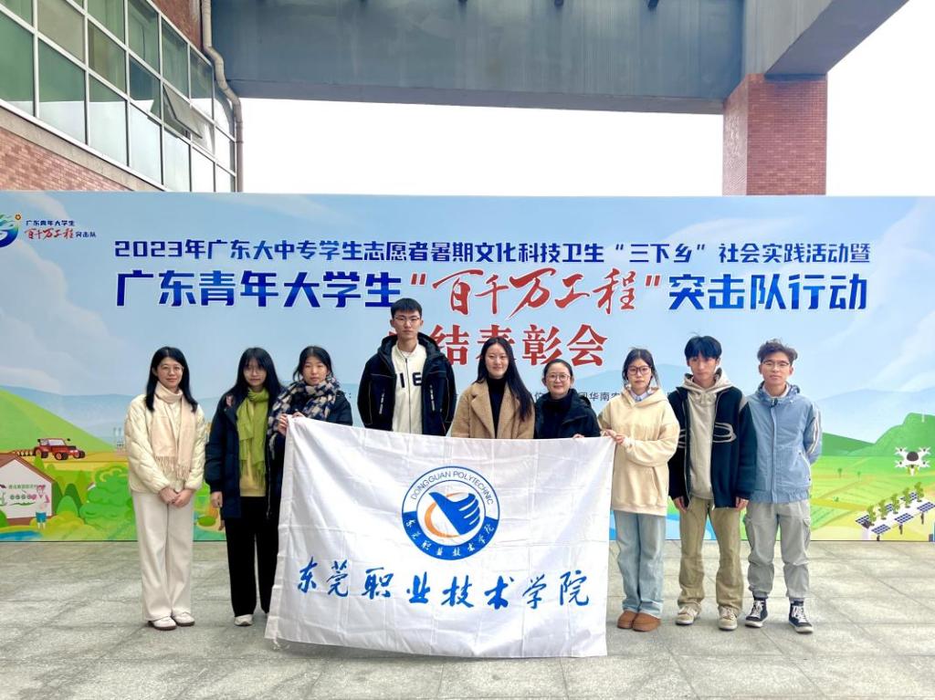 12月21日,2023年广东青年大学生“百千万工程”突击队行动总结表彰大会在华南农业大学举办,我校获评2023年广东青年大学生“百千万工程”突击队行动“优秀组织单位”。在今年的省级“三下乡”社会实践总结工作中,我校共获得14项荣誉,其中“净湖卫士——用激光雷达及人工智能技术守护东莞水域环境”等2个项目获“优秀品牌项目”称号(全省共100个)、“莞铜乡情连,多彩贵州行——东莞职业技术学院石阡实践团”等7个团队获“优秀团队”称号、杨泽坤等4名师生获“优秀个人”称号。