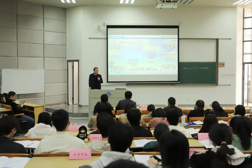 刘海光副校长进行了动员讲话,并提出三点期望:一是期望同学们通过理论学习、实践锻炼和赛事磨炼,不断地提高自我,提升自我;二是要在创新中打造自己的核心优势,在产教融合中形成自己的双创教学特色,打造具有示范引领的核心优势;三是希望同学们自我提高、自我约束、加强合作,把个人的理想抱负融入创新创业的生动实践中,在创新创业大潮中实现自我价值。最后祝愿同学学有所获,不断突破自我、追求卓越。随后,李国臣教授介绍了创新创业实验班的培养模式和教学内容并对实验班全体学生提出了期望,并要求同学们按照实验班的教学要求,在创新中提高认知,在创业中克服苦难、实现自我。最后,本次培训的主讲嘉宾曾准老师以《如何打造优质创新创业项目,创赛项目开发逻辑》为主题,开始了本次项目的集训授课。