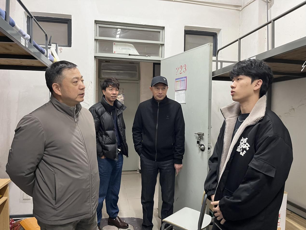 会后,杨云奇副校长带队走访了学生宿舍,检查了宿舍周边环境、消防设施、社区文化及公共服务等。