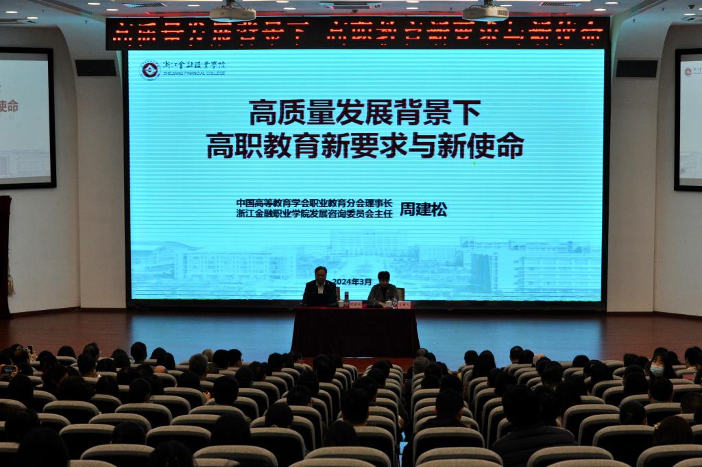 3月7日下午,我校邀请中国高等教育学会职业教育分会理事长、浙江金融职业学院发展咨询委员会主任周建松教授在培训楼报告厅作“高质量发展背景下高职教育新要求与新使命”职业教育发展主题讲座。讲座由校党委书记司琪主持,学校全体教职工参加。
