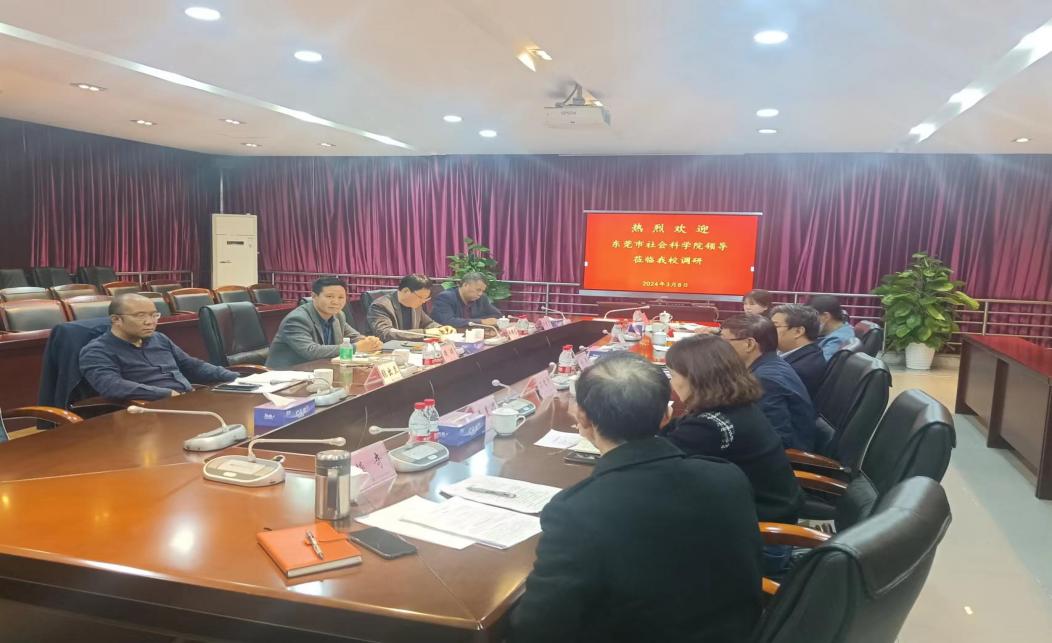 3月8日下午,东莞市社会科学院副院长黄琦教授一行四人莅临我校开展“推进在莞高校马克思主义学院建设水平”专题调研座谈。我校党委委员、宣传部部长杨洋,马克思主义学院院长石文斌等人参与座谈。