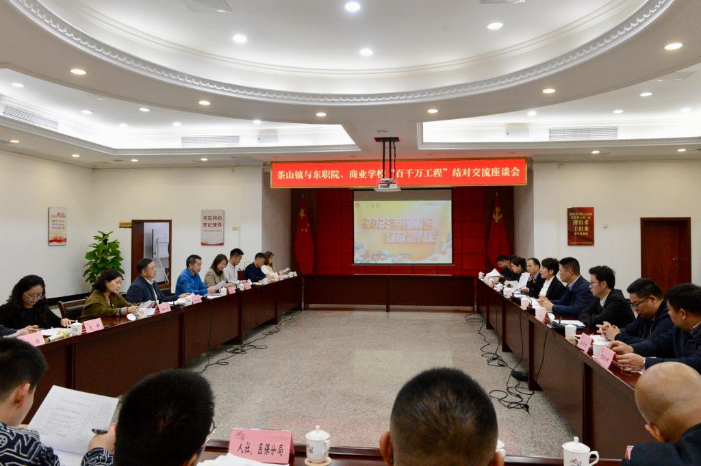横沥镇、茶山镇均对东职院、东莞市商业学校的支持表示感谢,希望结合各方优势资源,建立起长久合作机制,共同助力“百千万工程”落地见效。