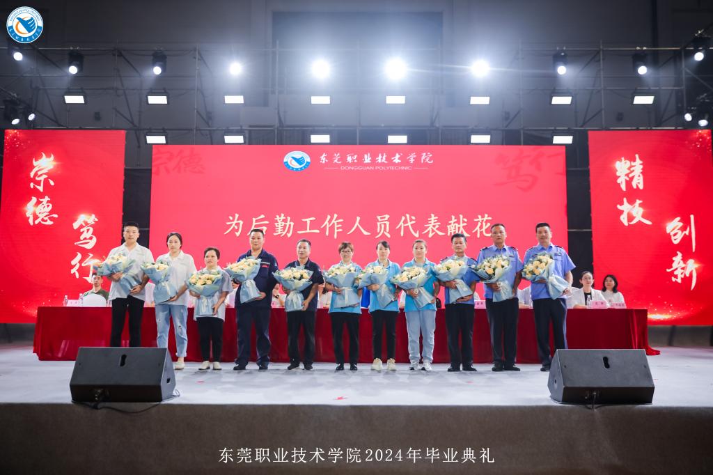 毕业典礼在庄严的国歌声中拉开了序幕。数字媒体学院陈可代表毕业生发言,她向母校和所有老师的辛勤培育表达了深深的感谢,表示以不懈的努力和汗水,书写自己独特的人生篇章,以实际行动展现作为东职人的拼搏精神和不懈追求。随后,毕业生代表为辛勤耕耘的毕业班优秀教师代表和默默付出的后勤工作人员献花,感谢他们的谆谆教导和辛勤付出。