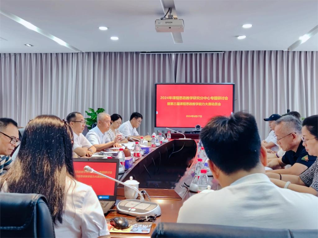 6月27日下午,学校课程思政教学研究分中心建设专题研讨会暨第三届课程思政教学大赛动员会于立德楼B415召开。校党委副书记、校长、课程思政教学研究中心主任贺定修出席会议,校党委委员、教务处处长、课程思政教学研究中心副主任王志明主持会议,各二级学院课程思政分中心主任参与研讨。