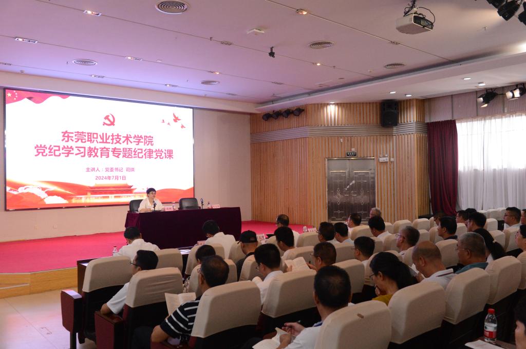 为进一步深化学校党纪学习教育工作,推动学习教育成果转化,7月1日上午,学校党委书记司琪以“坚定理想信念,严守纪律规矩”为题,在图书馆二楼报告厅讲授党纪学习教育专题党课。党课由党委副书记、校长贺定修主持,校领导班子、学校全体中层干部、党支部书记共一百余人参加党课学习。
