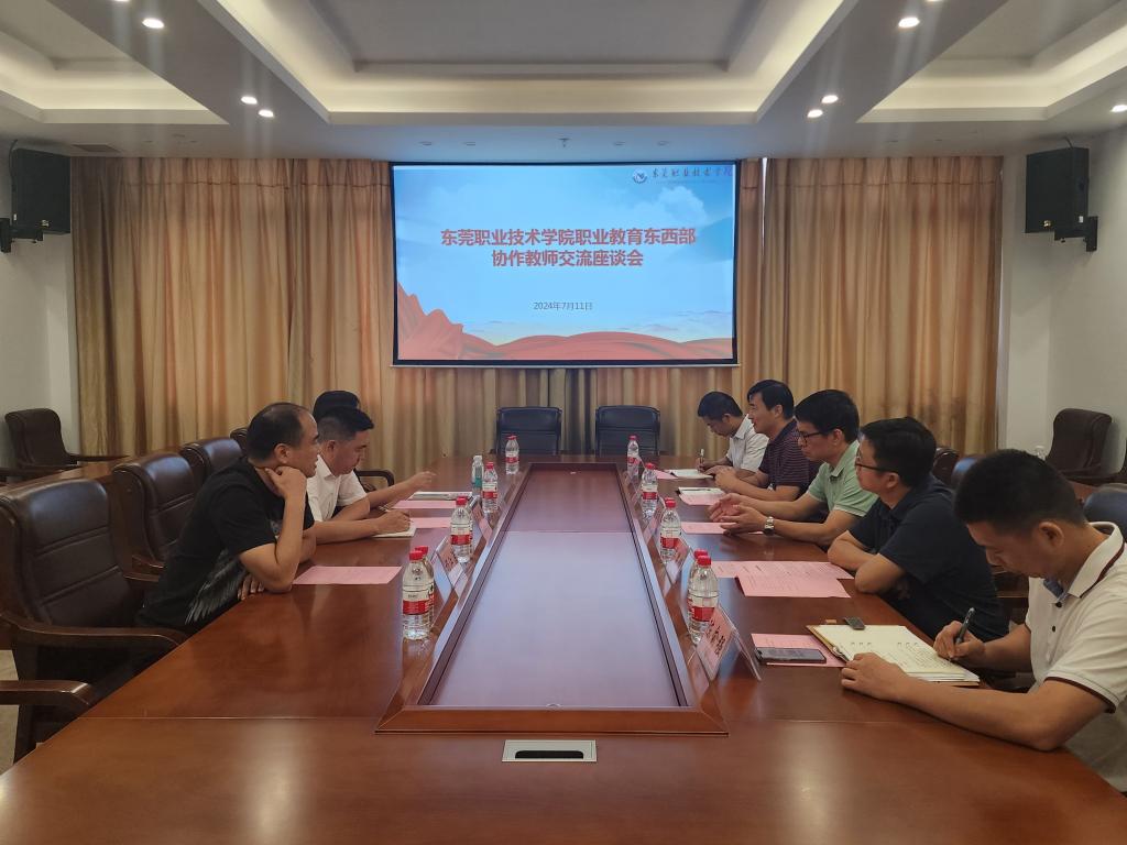 7月11日上午,我校在培训楼召开职业教育东西部协作教师交流座谈会。校党委副书记、纪委书记蔡东宝出席,铜仁职业技术学院派驻交流教师仝广增、杨江涛、刘洋以及我校电子信息学院、人工智能学院负责人参加会议。座谈会由党委组织部部长、人事处处长吴显嵘主持。