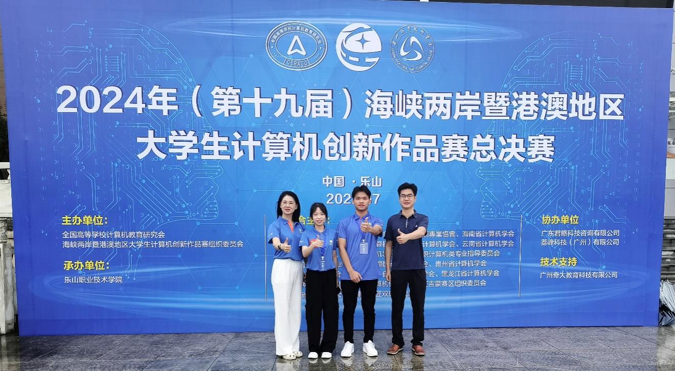 2024年7月12日至15日,2024年(第十九届)海峡两岸暨港澳地区大学生计算机创新作品赛总决赛(高职组)在乐山职业技术学院举行,经过各赛区初赛选拔,来自27省的81支队伍参加。我校作为广东省6所学校代表队之一参加了此次总决赛。