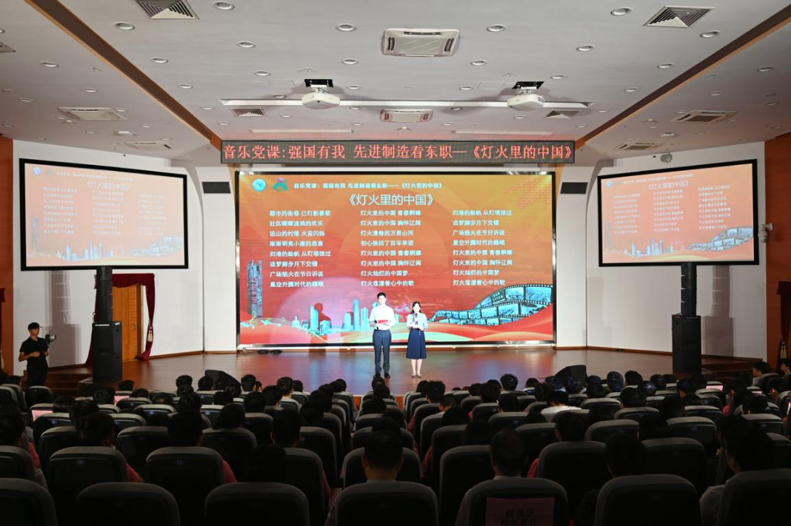 音乐党课以“强国有我 先进制造看东职”为主题,通过讲述、访谈、合唱等形式,回顾改革开放以来,太平手袋厂敢为人先的“三来一补”的时代精神,总结东职建校以来,校训蕴含的“三精一新”建设内涵,规划“强国有我 先进制造看东职”的东职未来。