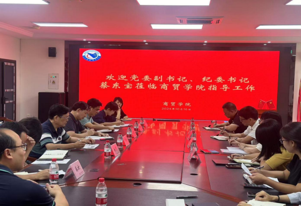 10月16日上午,校党委副书记、纪委书记蔡东宝到商贸学院开展调研座谈工作,商贸学院班子成员、专业负责人及教师代表参加调研座谈会。