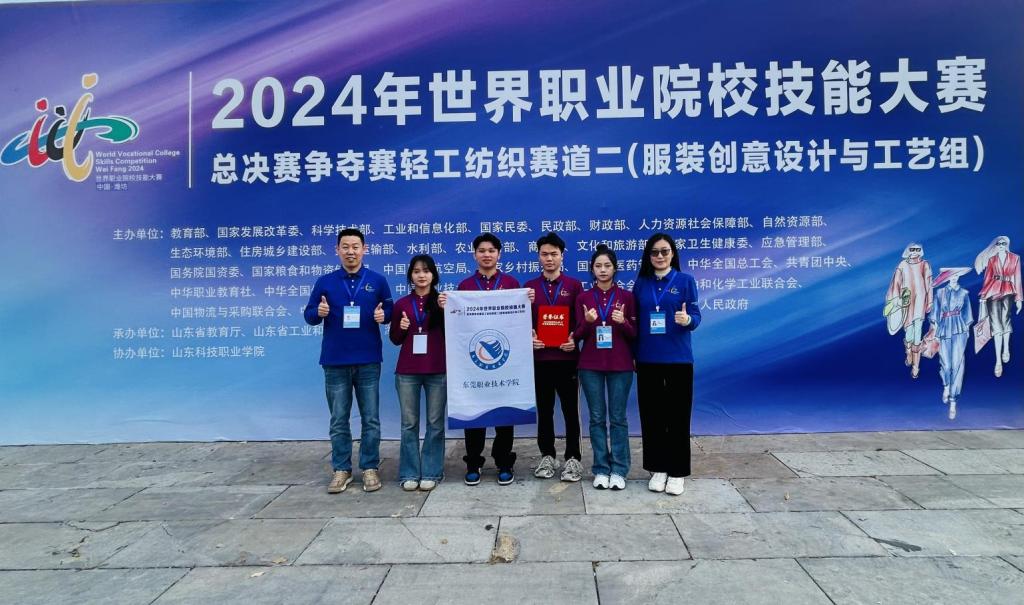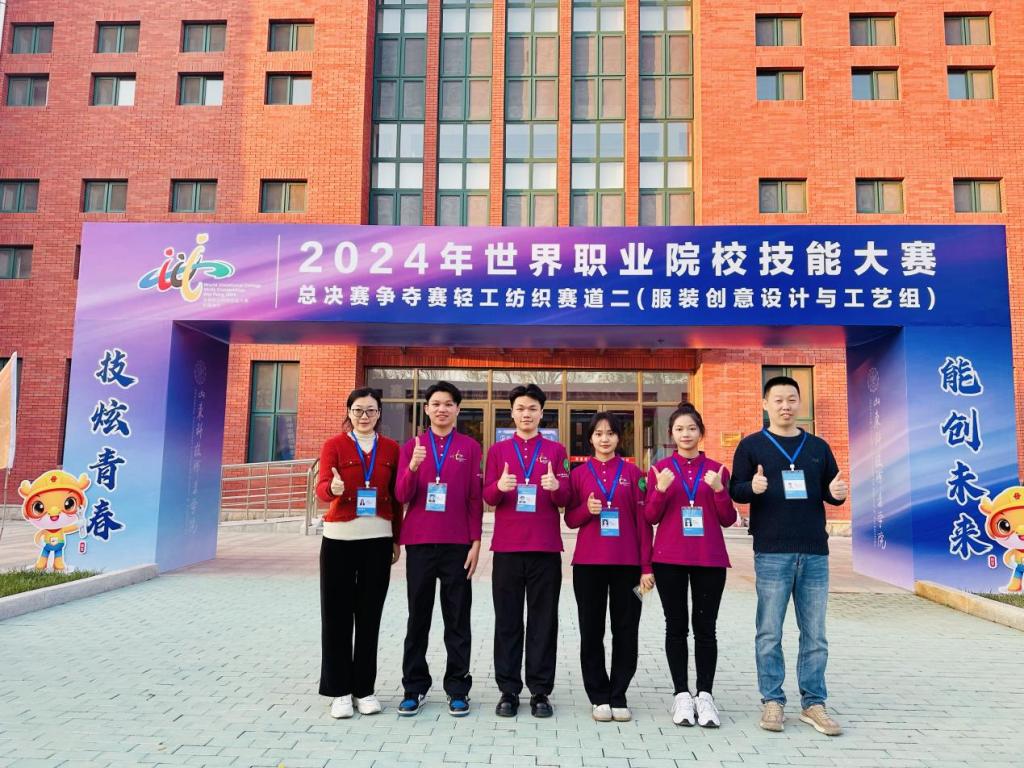 10月22日-25日,由教育部、工业和信息化部等多个部门联合主办的2024年世界职业院校技能大赛总决赛争夺赛高职组“服装创意设计与工艺”赛项在山东科技职业技术学院开赛。该赛项共有来自全国27个省、自治区的50所高职院校代表队参加。经过激烈的角逐,我校创意设计学院亓晓丽、刘梦老师指导的廖仲演、何强威、张芷羚、刘思汝团队斩获铜奖。