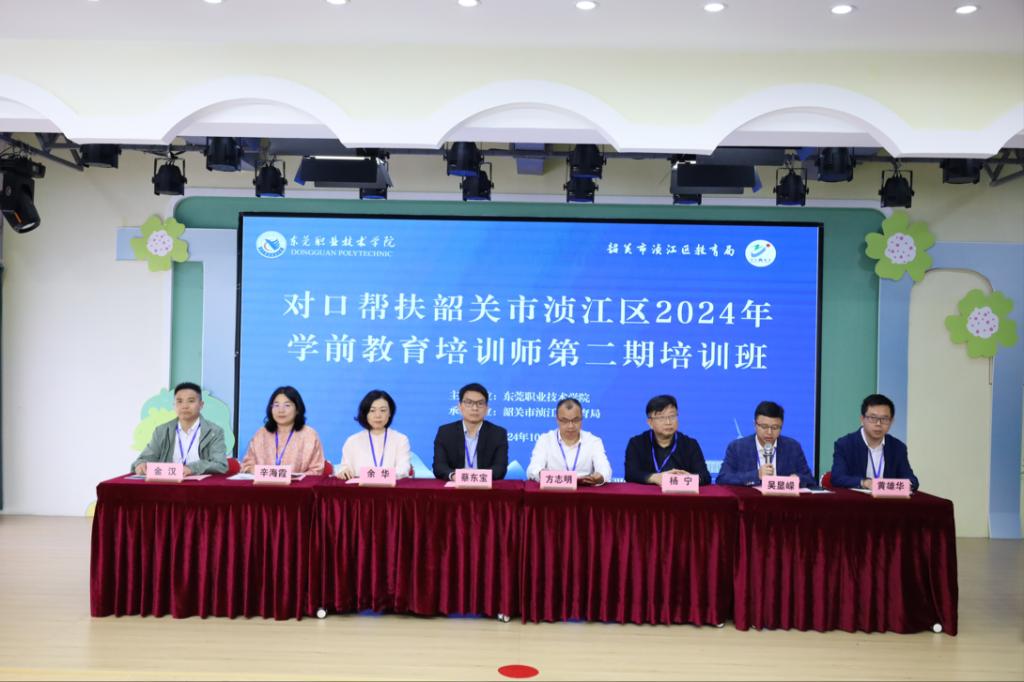 10月25日上午,我校全口径全方位融入式帮扶浈江区“学前教育培训师第二期培训班”开班仪式在韶关市浈江区执信幼儿园举行。我校党委副书记、纪委书记蔡东宝,组织部部长、人事处处长吴显嵘,韶关市浈江区政协副主席方志明,浈江区教育局局长余华等领导及30名学员参加了此次活动。