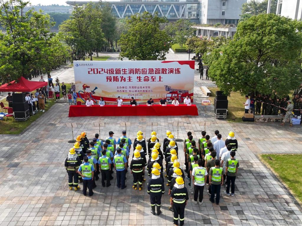 为营造“关注消防、学习消防、参与消防”的良好氛围,提升广大师生消防安全意识和自救互救能力,10月26日下午,我校联合松山湖消防救援大队在学校教学楼举行2024级新生消防灭火疏散演练活动。学校党委委员、副校长杨云奇,松山湖消防救援大队教官方宏杰出席了活动,各相关业务部门领导,各二级学院专职副书记、校卫队、2024级新生6000余人参加。
