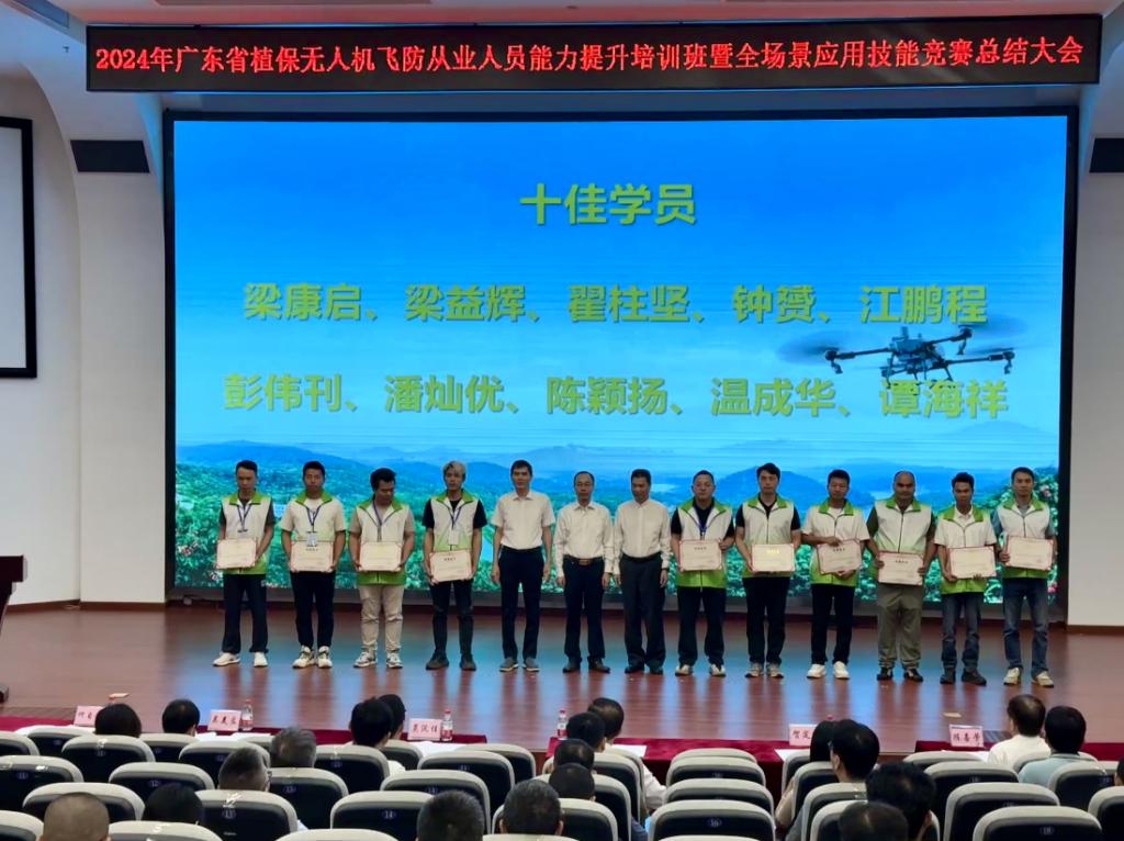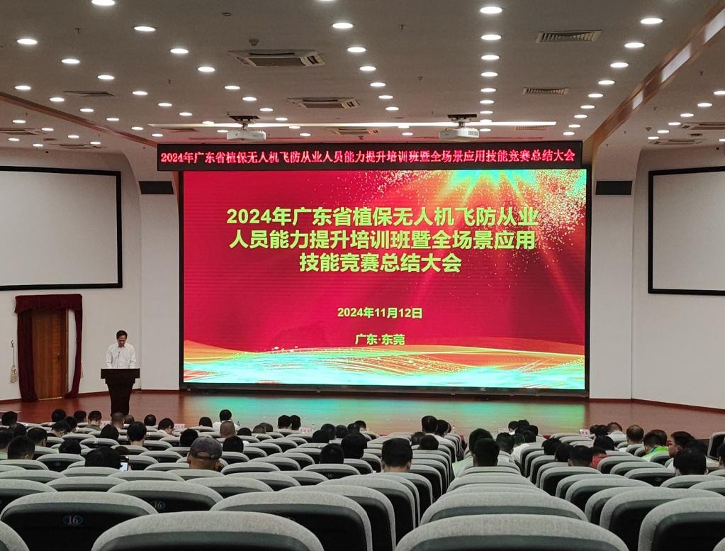11月12日上午,为期4天的2024年广东省植保无人机飞防从业人员能力提升培训班暨全场景应用技能竞赛顺利收官,总结大会在我校培训楼报告厅举行。省农业农村厅二级巡视员何国威,省农业农村厅植保植检处处长陈喜劳,省农业有害生物预警防控中心副主任黄忠革,省农科院植保所所长何自福,市政府副秘书长莫沃佳,市农业农村局局长吴美良,市农业农村局副局长詹惠航,我校党委副书记、校长贺定修出席大会。全体参训学员、选手,各地市代表160余人参加大会。大会由东莞市农业农村局副局长詹惠航主持。