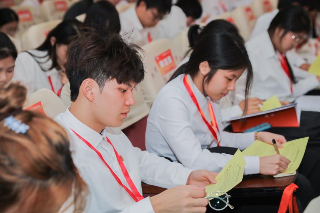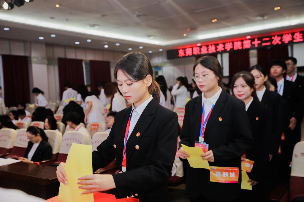 11月22日下午,我校第十二次学生代表大会在图书馆报告厅顺利召开,校党委书记司琪,团市委书记严正,校党委副书记、纪委书记蔡东宝,校党委委员、宣传部部长杨洋,东莞市学生联合会主席陈铭充,各学院党总支副书记出席会议,校院两级教师团干,学生会指导老师列席会议。各学院组成的11个代表团、146名学生代表参加会议。