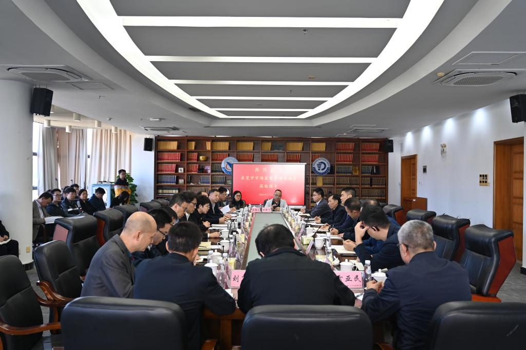 11月26日上午,东莞市市场监督管理局副局长林永强,松山湖商务与投资促进局四级调研员崔玉钟一行来我校调研食品安全工作,我校党委书记司琪,党委副书记、校长贺定修,党委委员、副校长杨云奇以及相关部门负责人在图书馆四楼会议室与来宾座谈。会议由党委书记司琪主持。
