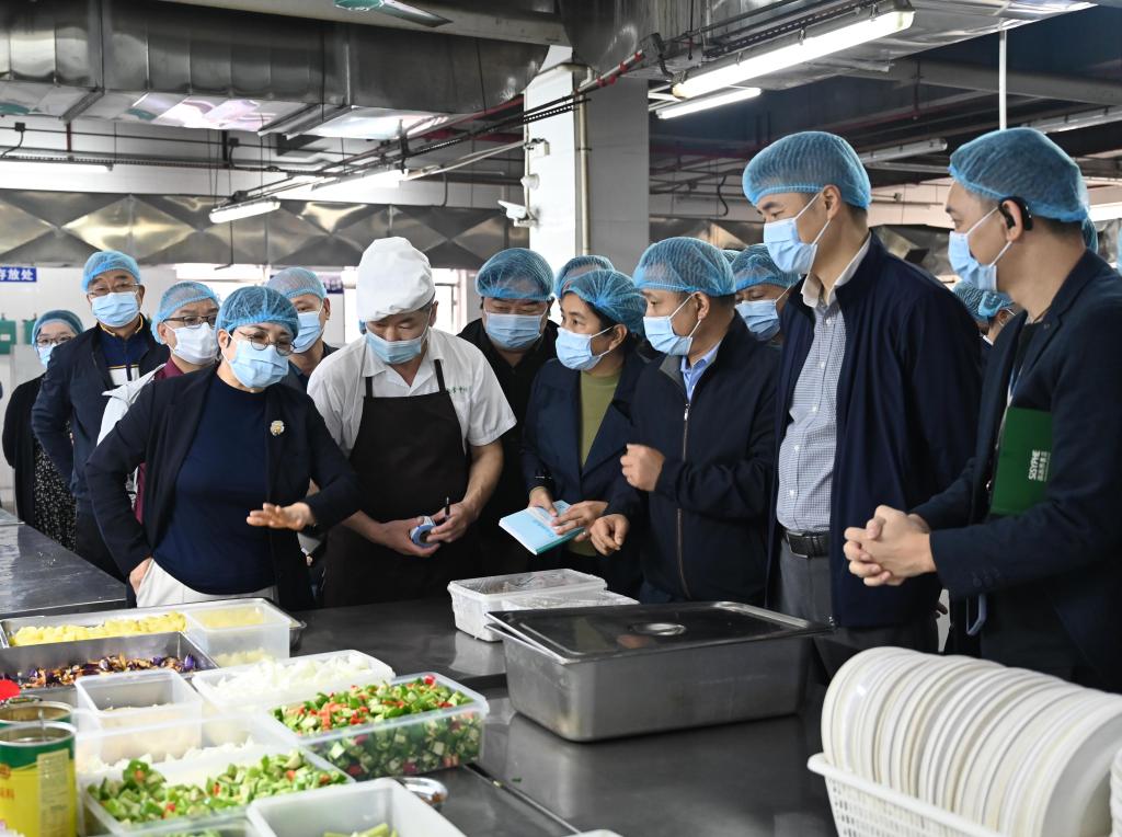 随后,东莞市市场监督管理局副局长林永强一行在司琪书记,贺定修校长,杨云奇副校长以及相关部门负责人的陪同下对学校食堂进行指导检查。在检查过程中,指导组对食堂的环境卫生、原料采购、食品加工、食品留样、餐具消毒等给予专业的意见建议。司琪书记在检查中表示,要严格对照食品安全标准,对发现的问题实行台账管理,下达整改要求,限期整改到位。