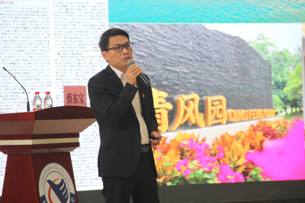 蔡东宝副书记以《论语》等中华传统文化及学校廉洁主题小品等丰富的内容引出主题,从“无信不立”“逝者如斯”“青出于丹”三个方面为师生深入剖析“三不腐”的内涵,引导青年学生坚守中华文化立场,做一名可信、可爱、可敬的中国青年,教育党员干部“不忘初心、牢记使命”,筑牢拒腐防变的思想防线,严守党的纪律,为推动我校高质量发展作出贡献。