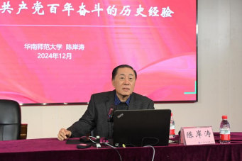 广东省教师继续教育学会会长、华南师范大学退休教授陈岸涛讲授的《从苦难辉煌中坚定必胜信心》从中国特色社会主义的发展趋势、中国共产党一往无前的坚定信仰、中国共产党领导的本质特征、中国共产党的自我革命精神四个方面,并结合国内外时事,深入浅出地分析了中国共产党人如何在苦难中树立必胜信心。