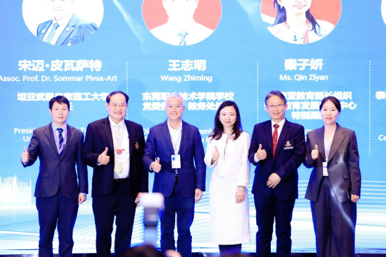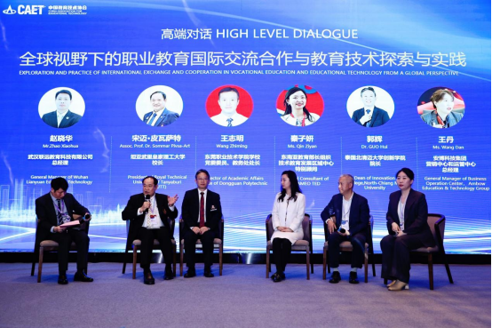 在随后举行的圆桌对话中,我校与东南亚教育部长组织技术教育发展区域中心、泰国兰塔纳功欣皇家理工大学、泰国北清迈大学、安博科技集团等代表进行交流。围绕“全球视野下的职业教育国际交流合作与教育技术探索与实践”话题,王志明结合我国数字教育的新发展、新使命以及职业院校“职教出海”对数字资源的新要求,与中外学者进行对话,指出了在加快和扩大教育对外交流的当下,数字化转型对提升教育公平和质量的重要意义,对促进各国民心相通,传播优秀文化发挥重要作用。他强调,教育、产业和科技需要加强协同合作,建立互助共享的数字教育分享机制,培育数字化教育新生态。