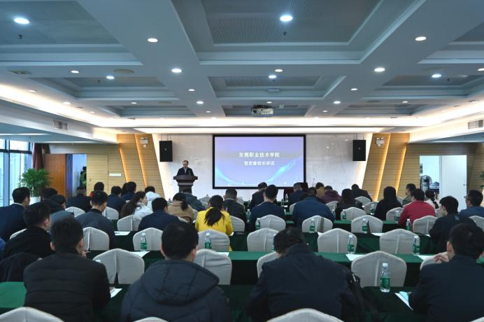 12月26日上午,学校在图书馆四楼展示交流中心会议室举办“育特色人才,培养莞邑现场工程师”培训活动,校党委副书记、校长贺定修,东莞市教育局代表,各高中职学校、技师学校领导,市现场工程师培养专项计划专班负责人及专业教师,相关企业代表共100余人参会。