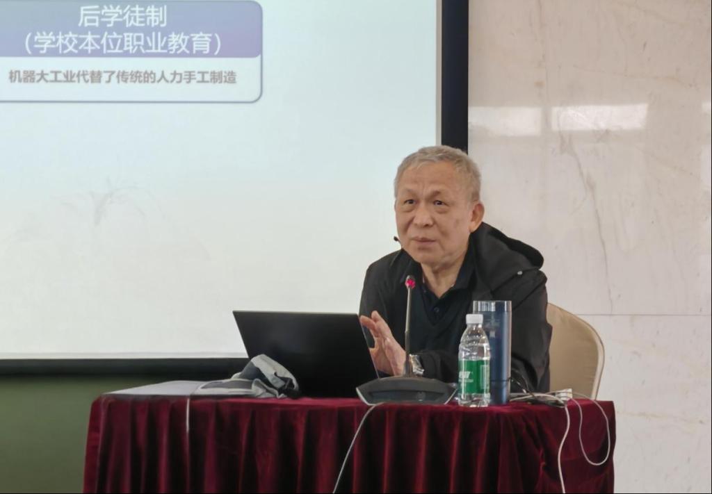 广东省人民政府参事、广东建设职业技术学院原校长赵鹏飞教授作了《基于中国特色学徒制的职业教育现场工程师人才培养的思考》的报告,分析了“中国特色学徒制”与“现场工程师”培养的相关政策、建设任务,剖析了在培养现场工程师过程中校企合作、课程建设、“双师”队伍建设等实践中面临的重难点问题,提出了破解思路。