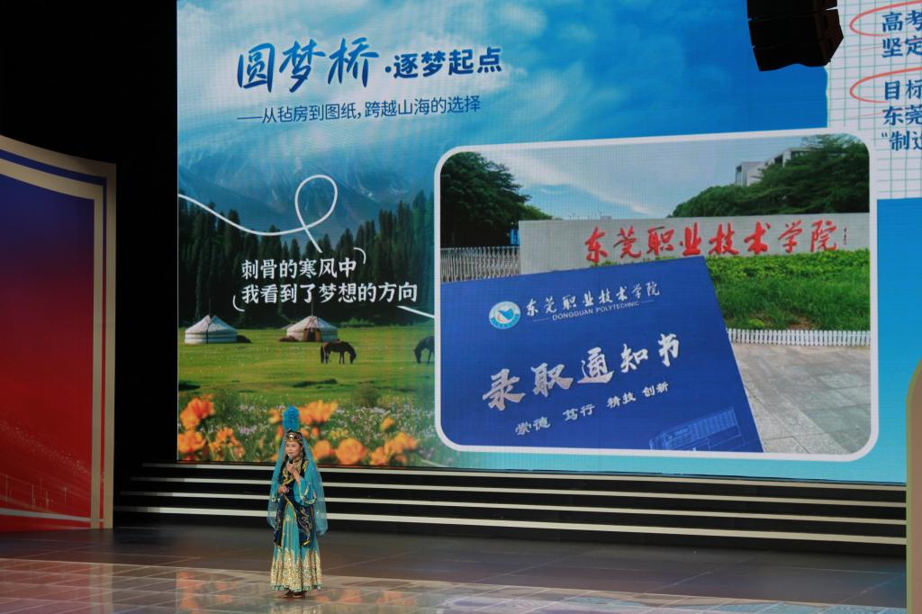 比赛现场,我校参赛选手们以声传情、以志明心,生动再现了青年人在莞邑大地追梦的生动现实。建筑学院的阿依波塔·赛里白克同学讲述了自己从新疆来到东莞求学,立志为家乡建起民族团结同心时代桥的决心,她说“梦想的终点,不是远离,而是回归;不是独行,而是带着时代的光,照亮来时的路”。人工智能学院的黄晓聪同学讲述了自己身披戎装,用热血诠释青年责任担当的经历,他用自身行动诠释了“青春不以山海为远,志愿只向国家未来”的青春誓言。