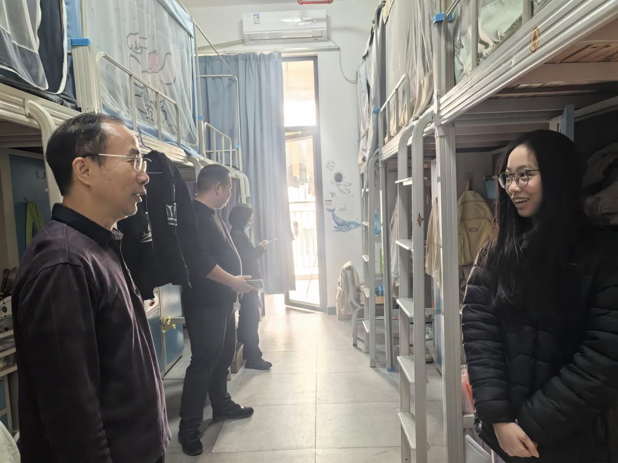 走进学生宿舍,贺定修校长看望假期留校的同学们。他仔细查看了宿舍内的安全设施情况,嘱咐同学们要遵守宿舍管理制度,注意宿舍安全,增强自我保护意识,在清明假期期间合理安排学习和生活时间,度过一个平安而有意义的假期。