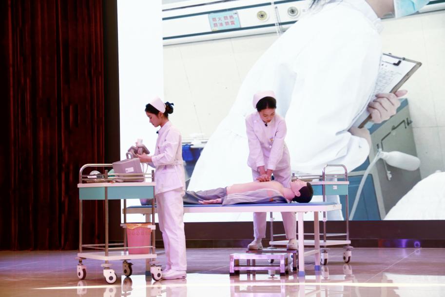 大会对在心肺复苏+AED、隔离技术、“创新宣传,传递康复力量”宣传海报设计、药物分析技术等4项专业技能竞赛中脱颖而出的6个获奖团队和60名获奖个人进行了表彰。省级高职院校护理技能及老年护理与保健技能竞赛的获奖学生,现场展示精湛护理技能,每一个规范的操作动作,都彰显着护理人的专业与严谨。学院舞蹈队带来的精彩舞蹈,为大会增添了灵动与活力,让现场气氛持续升温。
