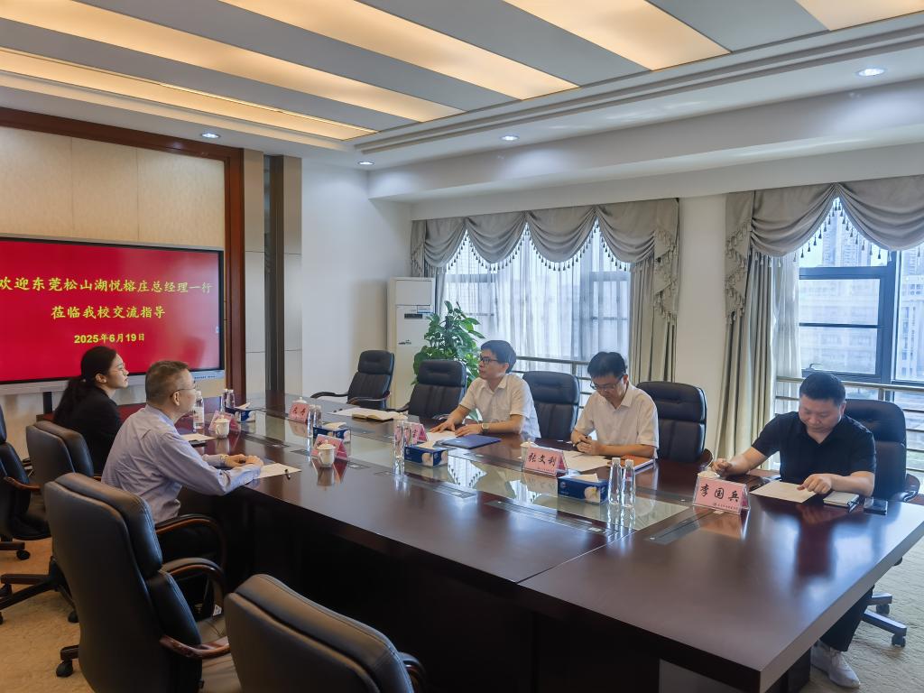 6月19日,为进一步深化校企合作,推动产教融合,我校与东莞松山湖悦榕庄酒店在行政楼A510会议室举行校企合作座谈会。东莞松山湖悦榕庄酒店总经理苏兆龙和人事部经理蓝愢萌到访,我校党委副书记、纪委书记蔡东宝,经济与管理学院副院长张文利和相关老师接待并参与座谈会。