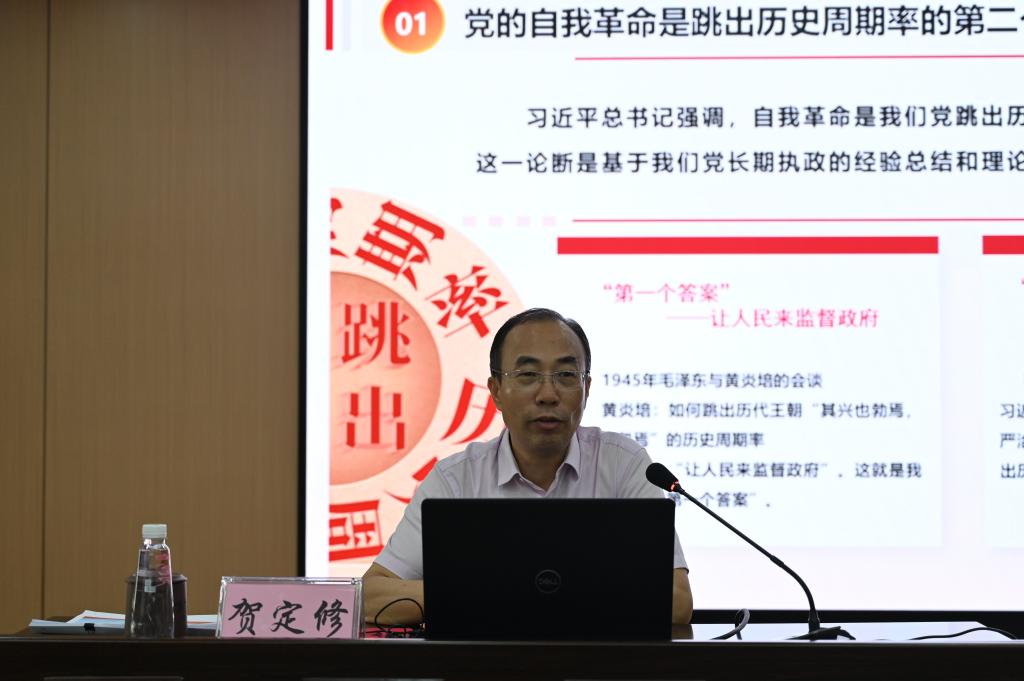 贺定修校长讲授深入贯彻中央八项规定精神学习教育专题党课