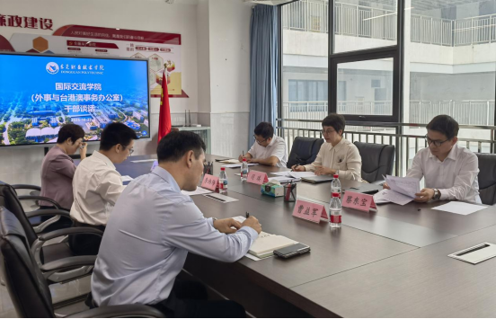 会上,国际交流学院党总支书记、院长李玮炜围绕服务学校“建双高、办本科”高质量发展目标,从学院基本概况、工作成效、发展瓶颈及工作思路四个方面作了系统汇报。他表示,学院将持续发挥党建引领作用,提前谋划和部署五年发展规划,积极推动学校对外交流合作再上新台阶。随后,学院专职副书记曹益军、副院长史淑琼分别结合分管领域,就留学生教育管理、国际合作办学等工作进行了汇报。