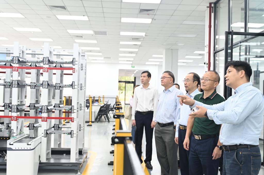 视察组一行在我校党委副书记、校长贺定修等校领导陪同下,实地考察了数字化智能制造工厂与智能终端产教融合实训基地,深入了解课程开发、学生实训及企业项目入驻等情况,并对我校推进“教学、实训、生产”一体化的模式表示高度认可。