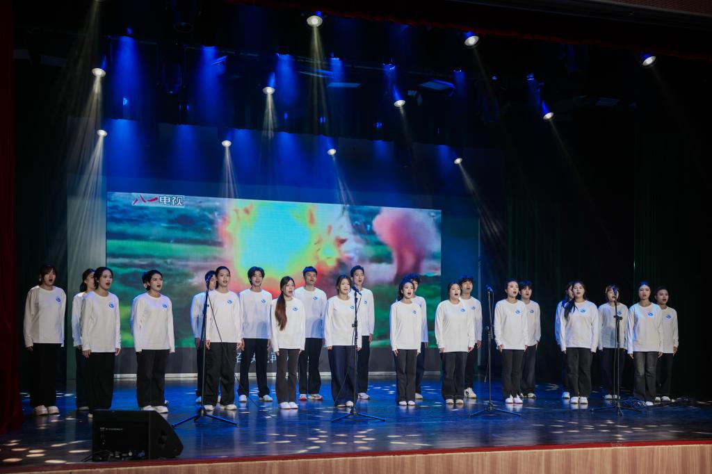第五篇章“电波嘹亮 追光长歌”,学生合唱主题曲《追光》,激昂的旋律与深情的歌声传递出青年追逐梦想、勇毅前行的信念,为本次音乐党课画上了圆满的句号。