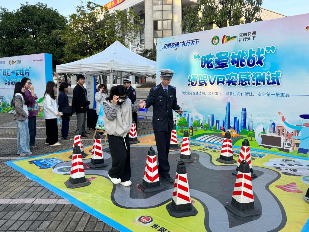 活动现场设置了多样互动区域,内容丰富且趣味性十足。安全头盔展示摊位直观呈现防护重要性,模拟酒驾和醉驾体验让师生亲身感受危险驾驶的视觉错觉与操作障碍,交通标识知识闯关以问答形式夯实理论基础,交通情景演绎大猜想则通过趣味情境引导师生主动思考避险技巧。活动创新采用“游戏集章兑换奖品”的形式,充分调动了师生的参与热情,让原本枯燥的交通安全知识在轻松互动中入脑入心,实现“寓教于乐”的教育效果。