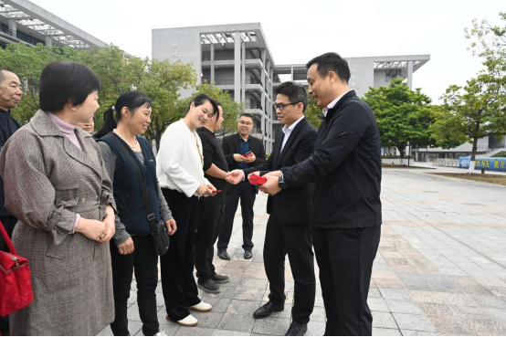 蔡东宝一行前往校训石广场,在这里集中慰问了寒假期间坚守岗位的职工代表,为他们发放新春红包,并与大家亲切交流、合影留念。随后,蔡东宝一行先后走访了学校各主要门岗、警务室等地,每到一处,都与在岗工作人员亲切握手、互致问候,详细了解节日期间值班安排和工作保障情况,对大家舍小家、顾大家,坚守岗位、无私奉献的精神表示衷心感谢。
