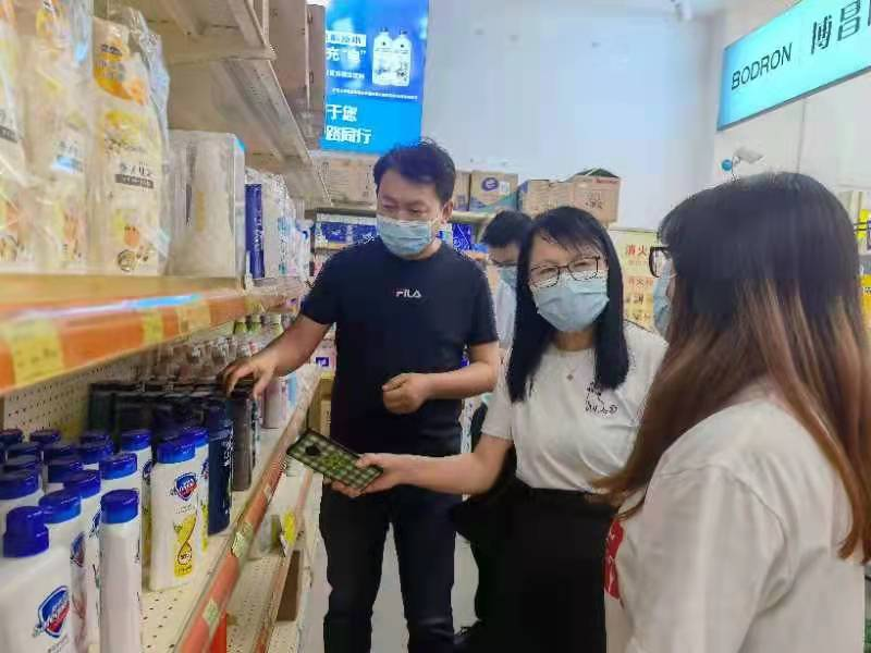 经管学院领导班子在听取大学生超市负责人对疫情防控期间的工作方案汇报后,实地检查了大超防控措施的落实情况,并对大超防疫工作提出具体要求:一是做好应急工作预案;二是在大超工作人员数量不足的情况下,积极招募70余名志愿者,参与疫情期间大超的防疫工作;三是确保所有进出人员(工作人员及顾客)必须佩戴口罩,亮绿码测体温后方可进入超市;四是加强人流管控,超市内实行分批限时进入,卖场内外人员排队遵守1米间隔距离;五是确保超市内货物库存充足、品种丰富,为校内师生提供优质服务及安全的购物环境保障。