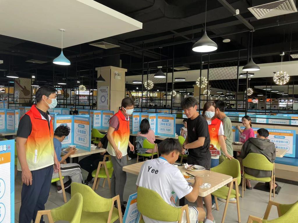 卞建勇院长带领党员教师在学生食堂进行防疫文明劝导