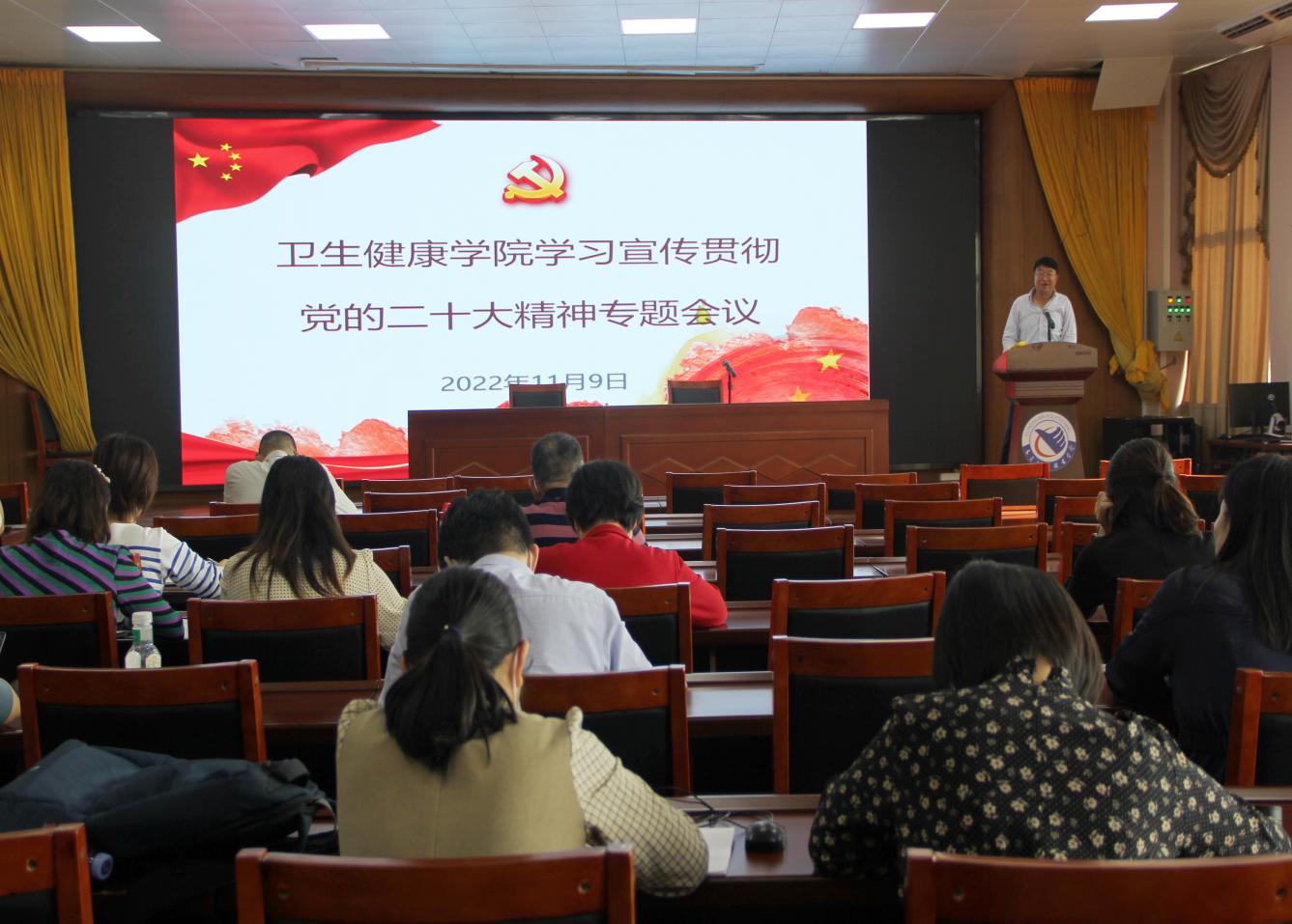 11月9日下午,卫生健康学院召开学习贯彻党的二十大精神专题会议,院领导、各党支部委员、各部门负责人等部分教职工代表参加了本次学习。