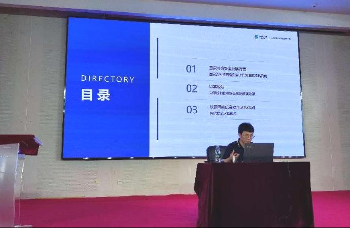 讲师高晗从国家为何将网络安全上升为国家战略高度、解读网络安全法相关政策、校园网络信息安全从我做起等三个方面,结合近年来发生的实际案例,联系我校网络安全情况和工作生活实际,讲解了有关网络安全知识和实用网络安全技巧。