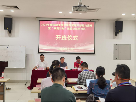 8月18日-20日,2023年贵阳职业技术学院管理干部能力提升暨“双高计划”建设交流学习班在我校举行。贵阳职业技术学院党委委员、组织部部长邹劲松,我校马克思主义学院院长石文斌出席开班仪式。贵阳职业技术学院相关处室、院系20名管理干部参加培训。